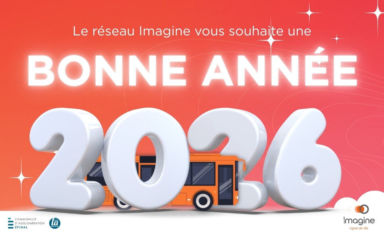 En ce début d’année, toute l’équipe du réseau Imagine vous adresse ses meilleurs vœux. Chaque jour, nos équipes s’engagent pour vous accompagner dans vos trajets du quotidien et faciliter votre mobilité. Merci pour votre confiance et votre fidélité. Nous vous souhaitons une excellente année, remplie de beaux voyages à bord du réseau Imagine.